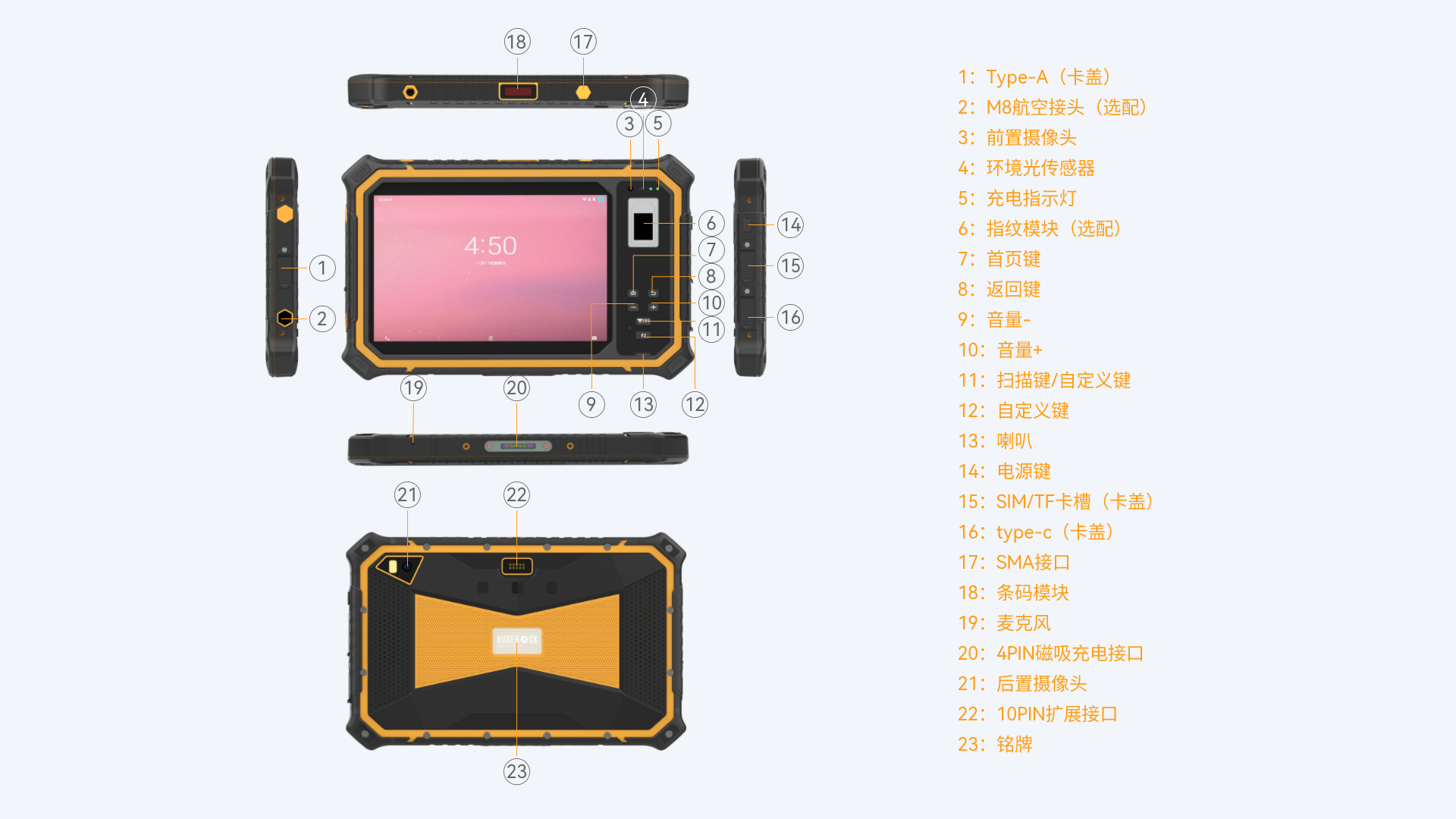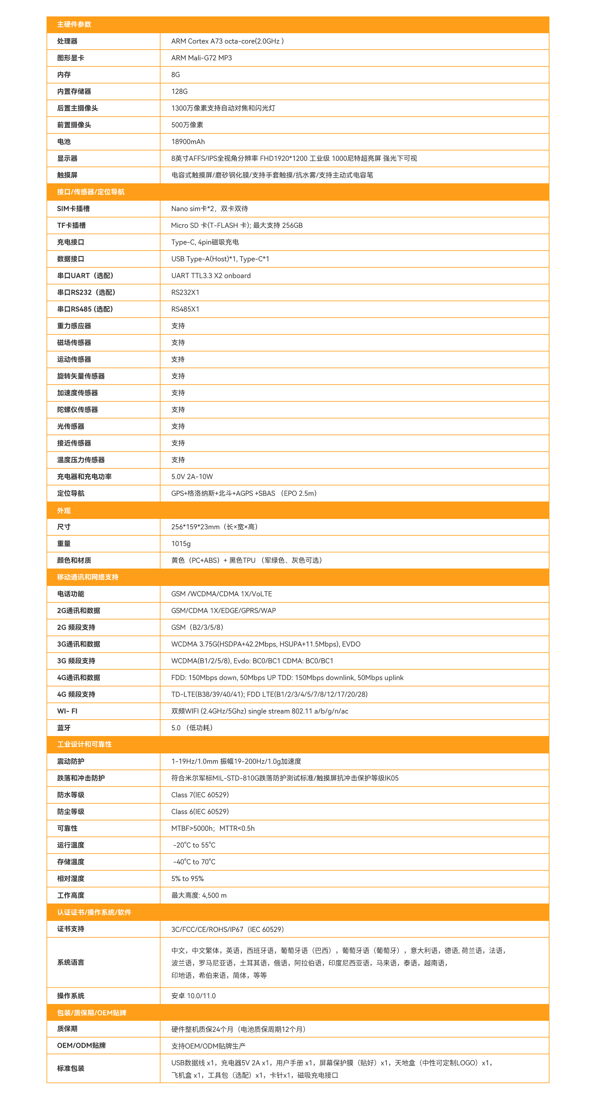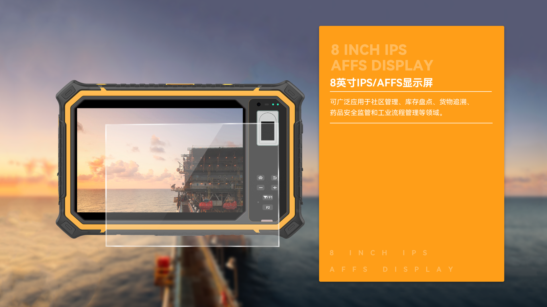 L8是一款拥有多功能数据采集的RFID三防平板电脑。支持RFID标签读写与NFC应用。L8外观设计实用,便携易带,运用8.0英寸G+G5点全钢化高强度电容触摸屏。产品采用领先的工业级防护,达到IP67密封标准。具有抗最高1.8m高度跌落的可靠性能,跌落防护符合MIL-STD-810G/Method516.6/ProcedureIV的军用保护等级。采用18900mAh高电压大容量锂电池,续航时间超长,为工作提供更有力的支持。速度最快的WIFI通信,保证速度传输的效率